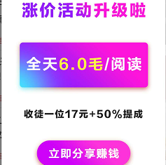 今日阅读是小云目前操作感觉最棒的平台,转发文章平台小云也做过不少,测试的过程中能感觉到一些平台是不是动了手脚,或者是技术能不能达标。今日阅读这平台是真的转化率高,并且链接的存活率不是一般的高,几天过后小云还可以收了前几天转发文章带来的收益,一开始小云也感觉意外,之前的单价只是0.2元每次点击。小云转发两篇文章,直接能赚十几块钱,现在可能因为全行业的影响不得不涨价,全天都是6毛每次点击,要按照现在的水平,在今日阅读平台上转发两篇文章应该可以赚到50元左右。如果你还没有今日阅读APP的话,不仿注册一个试一试,说不定有惊喜哦!