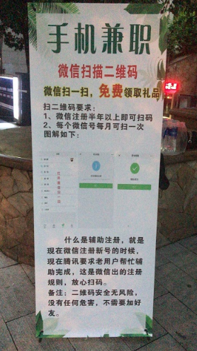 真的应了那句话,有钱的人只会越有钱,现在做荷花微信辅助的每天能超过100单以上的方法就是地推,网上推广效果很差,效率也底,想赚钱千万不要待在家里网上推。打印个固定码,搞个易拉宝,买点儿小礼物找个小区门口,或者地铁口,公园,超市,菜场门口都可以做的啊,