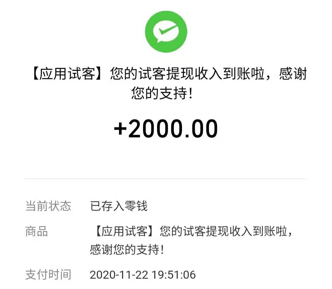 当应用试客余额赚到的钱满8块钱就可以申请提现,微信提现秒到账。下面是我应用试客提现截图: